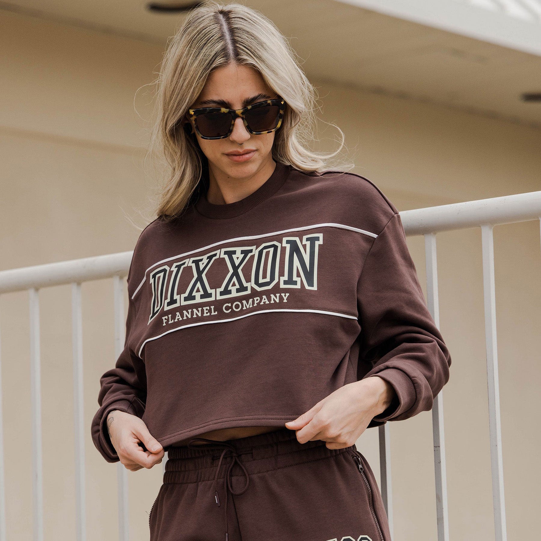 Women's DFCO Cropped Crewneck Sweatshirt - Brown - Dixxon Flannel Co.