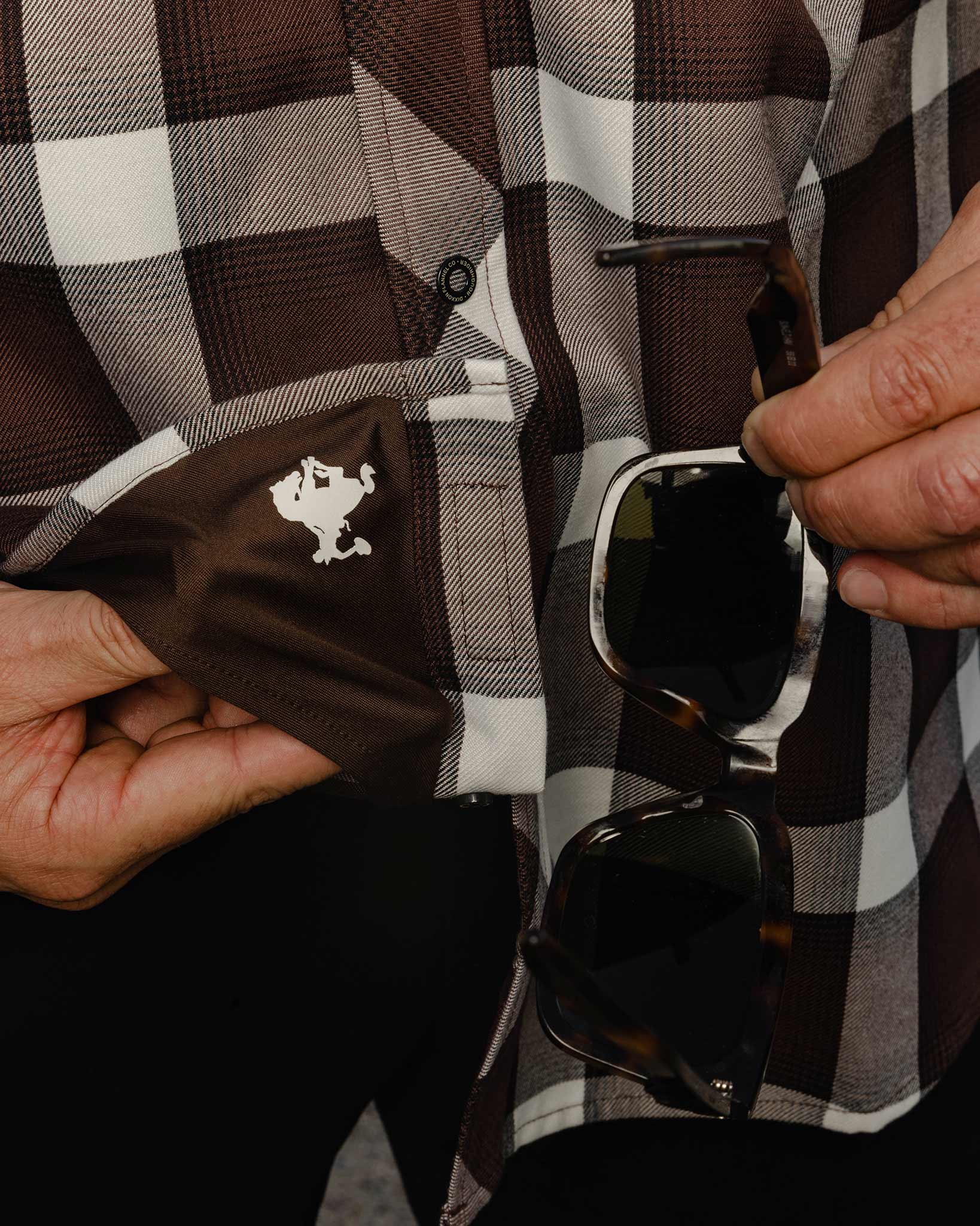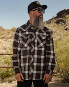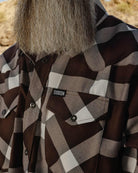 The Roughrider Flannel features an allover brown, white, and grey plaid pattern that offers a clean and classic design, while our signature D-Tech™ blend provides the comfort of soft to the touch flannel. Constructed to be breathable for the performance you demand, yet durable for the rugged lifestyle you live.