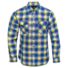 • Men’s blue, yellow, white, and red plaid patterned flannel shirt
