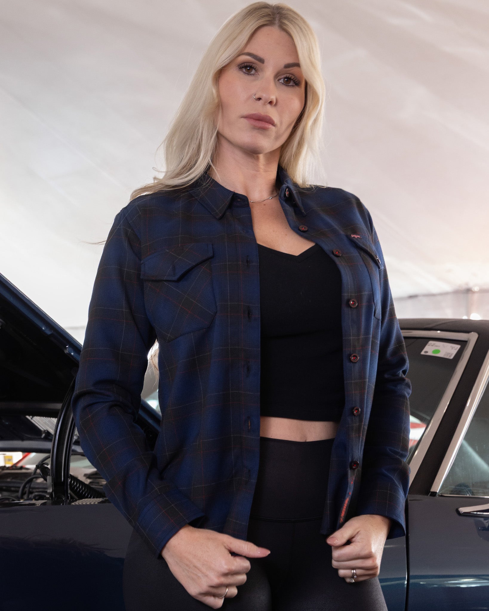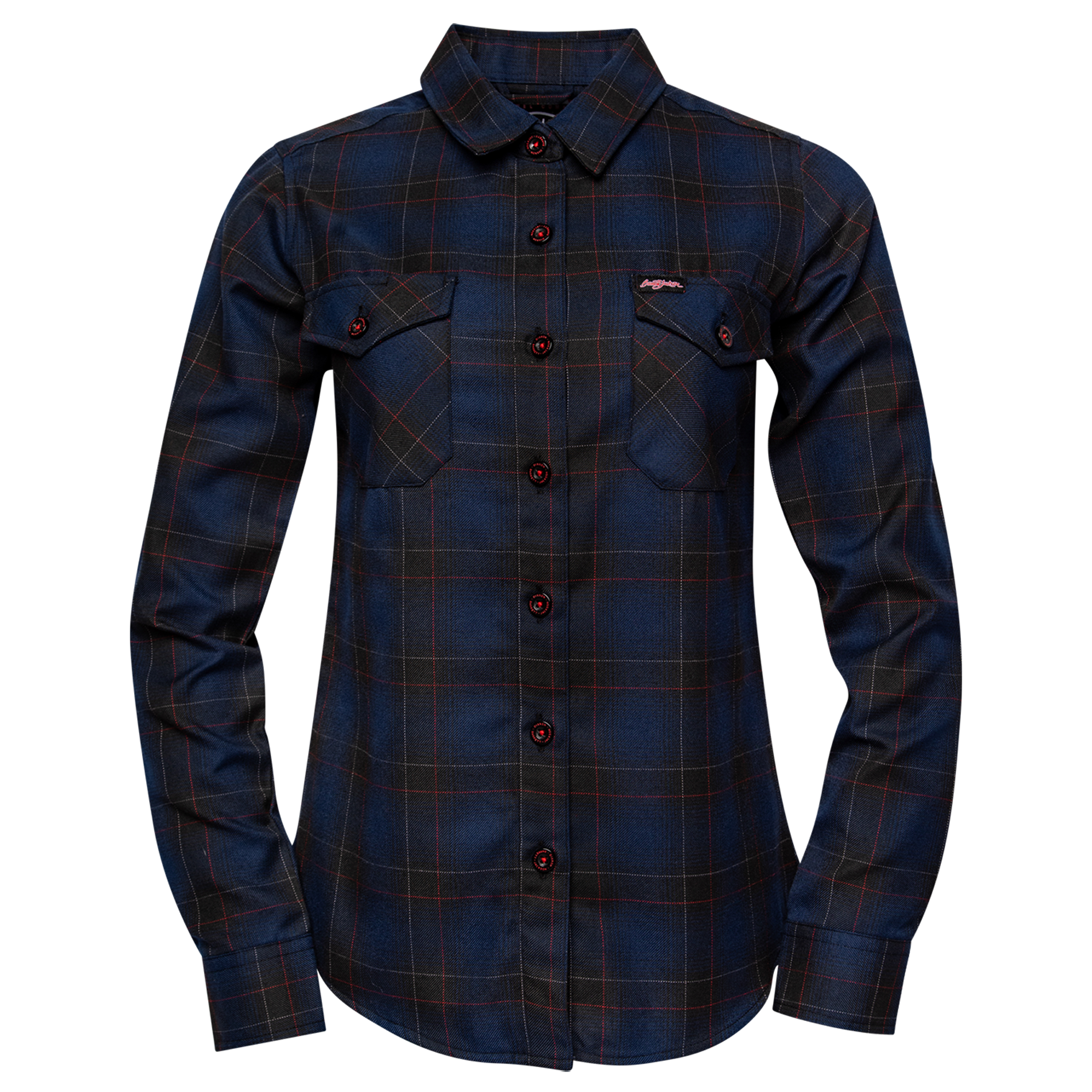 Fuel your everyday rotation with the 2026 Women’s Barrett Jackson Flannel, a bold blue, black, red, and white plaid inspired by the legacy and adrenaline of the auction block. Built with signature comfort and refined detailing, this collaboration piece delivers heritage style with a modern edge.