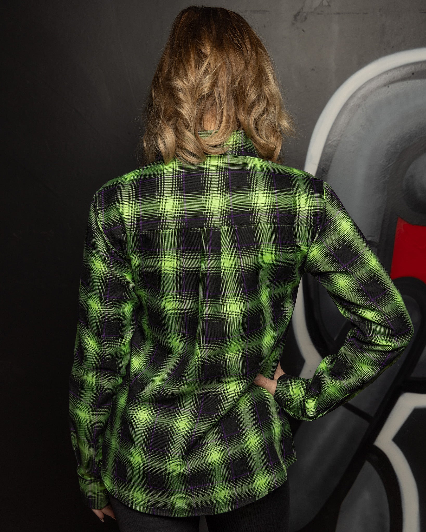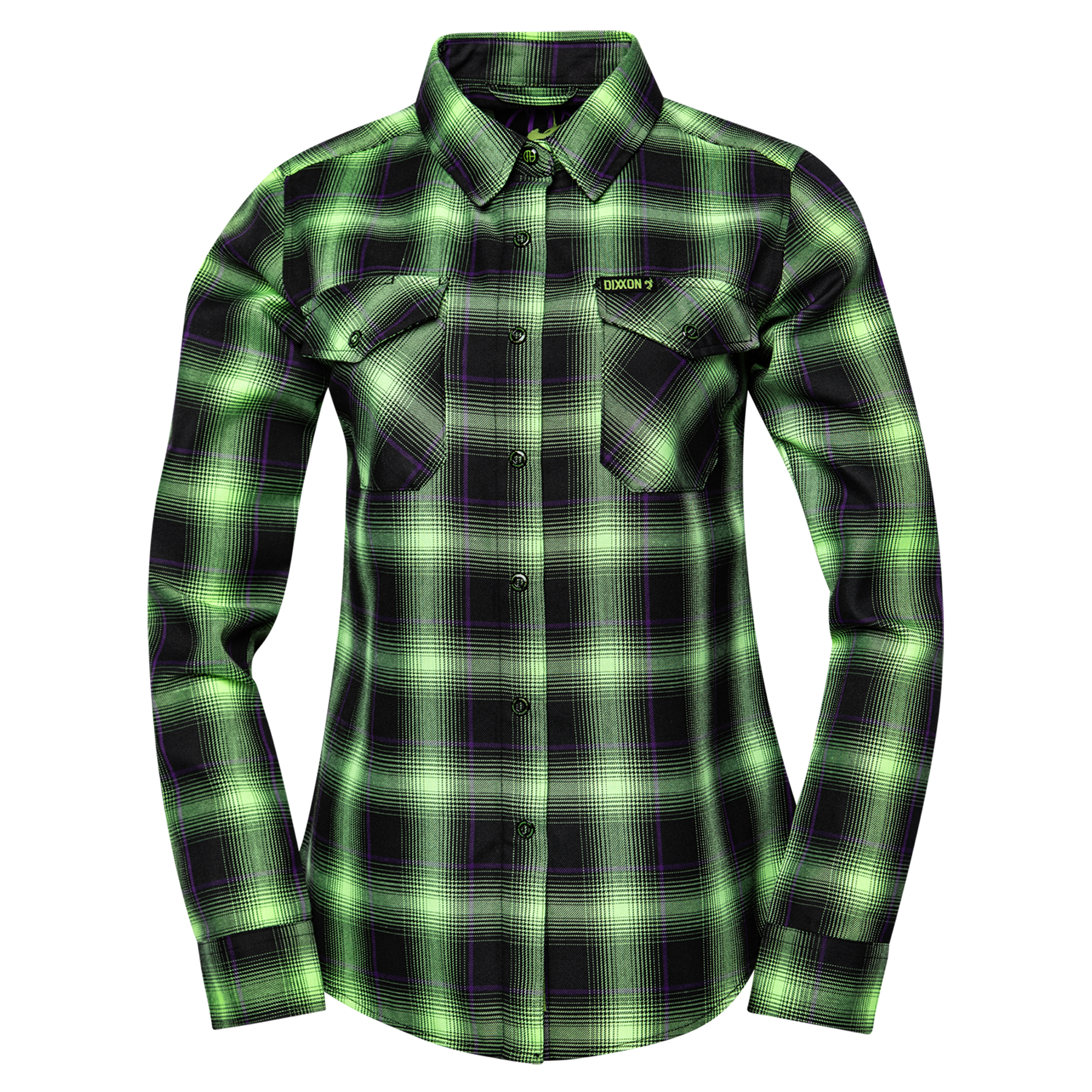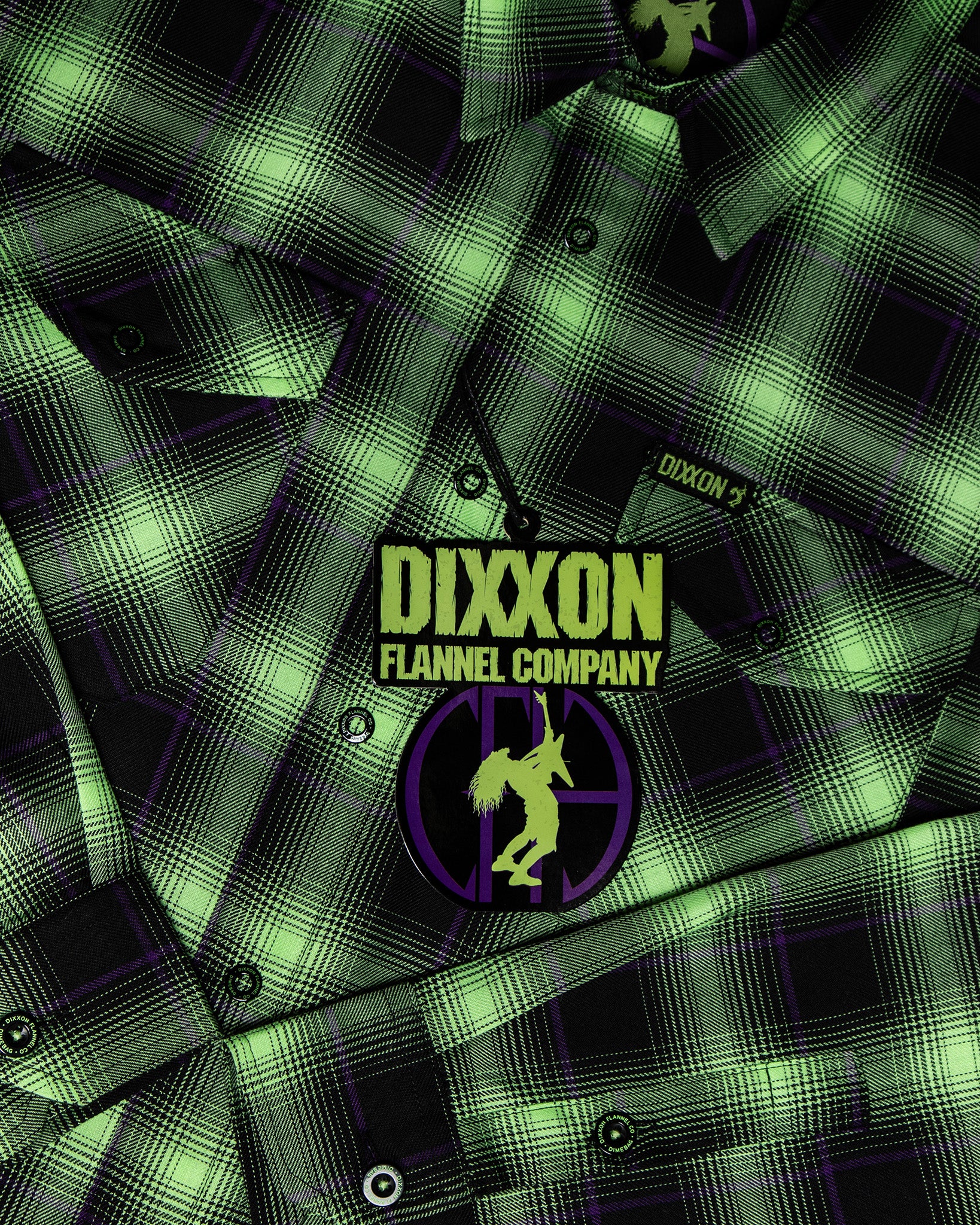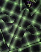 Bold, loud, and unapologetic—this flannel pays tribute to a true legend. The Women’s Dimebag Darrell Flannel features a striking green, black, and purple plaid pattern inspired by iconic style and raw energy. Built for comfort and durability without sacrificing attitude, this one’s made to stand out wherever you wear it.