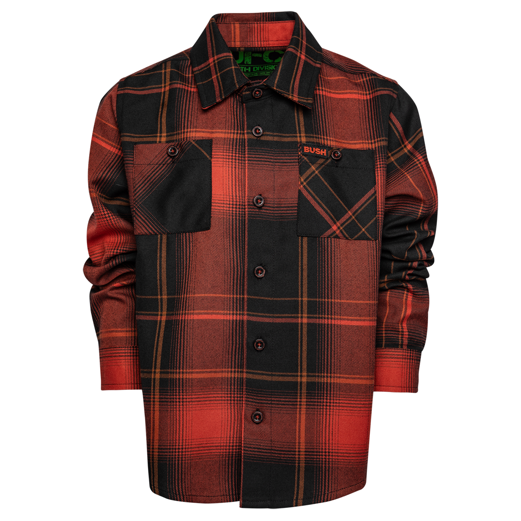 Turn it up and stand out in the Youth Bush Sixteen Stone Flannel. Featuring a bold red, black, and orange plaid pattern, this collab piece brings serious style in a kid-ready fit built for school days and weekend adventures.