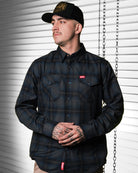 Built to hold its own day in and day out, the Benchmark Flannel delivers classic Dixxon style with a clean, versatile edge. Featuring a grey, black, blue, and white plaid pattern, this snap-front flannel is made for easy layering, dependable comfort, and everyday wear that never falls out of rotation.