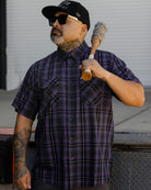 The Big League Bamboo Short Sleeve brings a grounded, easygoing vibe to your everyday fit. Featuring a crisp purple, black and white plaid, this button-up delivers breathable comfort and effortless style in one signature piece.
