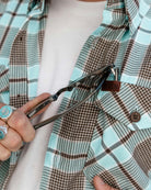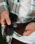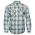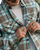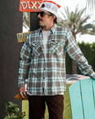The Bora Bora Flannel features a turquoise, brown houndstooth, and white plaid pattern and the rugged durability you expect from Dixxon, this classic button up is designed for wherever the grind takes you. From BBQs to backroads, you'll stay sharp and comfortable in our signature D-Tech™ blend.