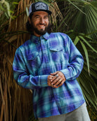 The McTwist Flannel is designed in collaboration with iconic skateboarder Mike McGill, featuring a blue and white plaid pattern and the rugged durability you expect from Dixxon. Finished with our signature D-Tech™ blend for wrinkle and shrink resistance.