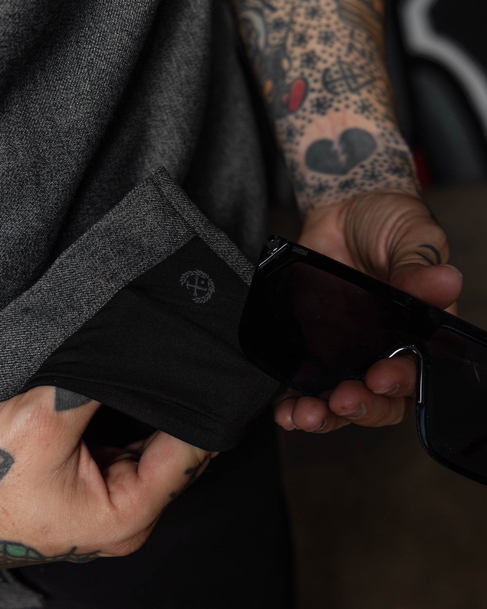• Solid charcoal heather pattern throughout