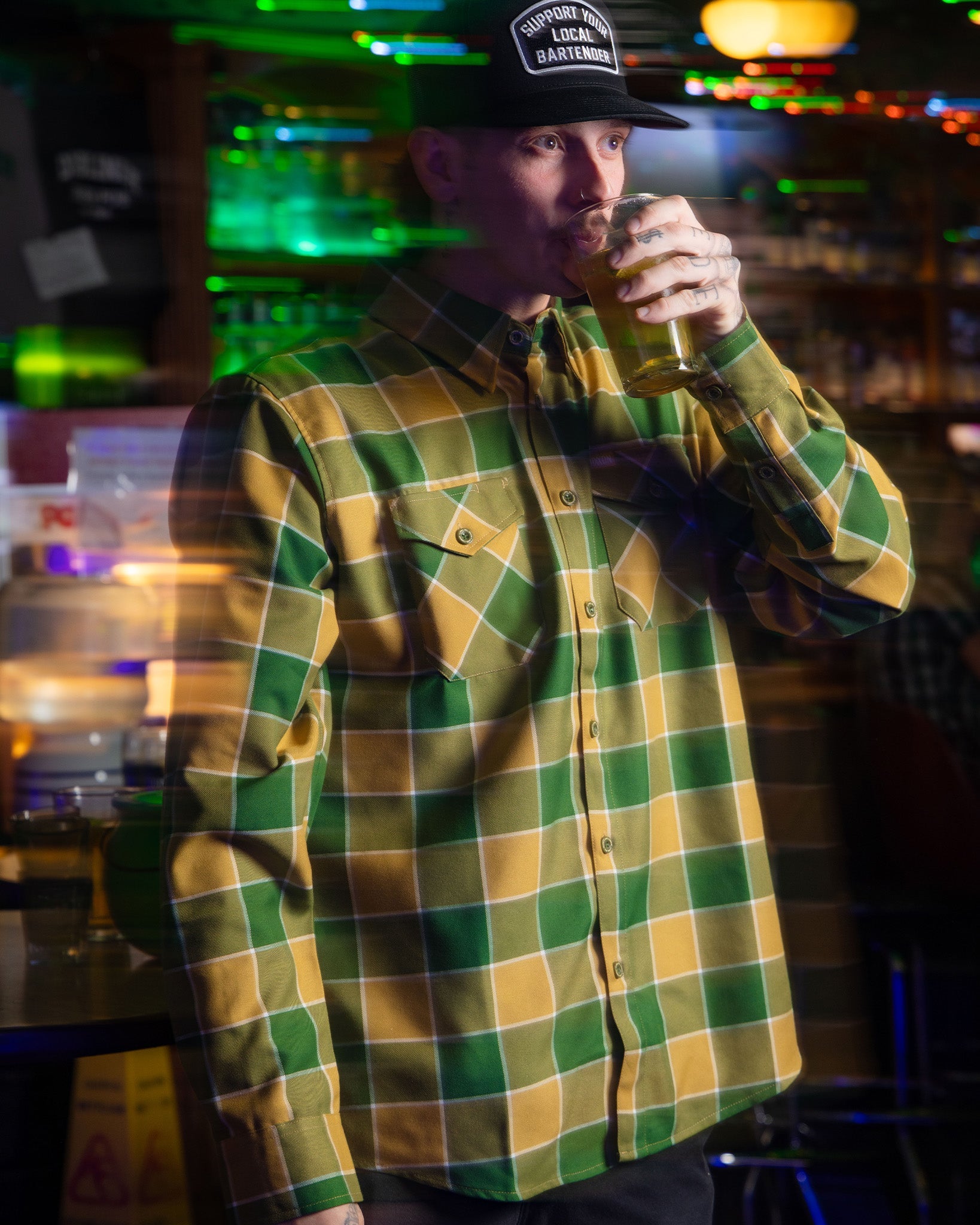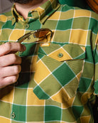 Chase the gold and own the night in the Trinity Flannel. Featuring a bold gold, green, and white plaid pattern inspired by St. Paddy’s Day energy, this piece brings lucky charm vibes with a rugged edge. Whether you're posted up at the pub or layering up for cool spring nights, the Trinity delivers standout style with everyday durability. Crafted from our signature D-Tech™ blend, it’s built to keep you comfortable, sharp, and ready for whatever the day throws your way.