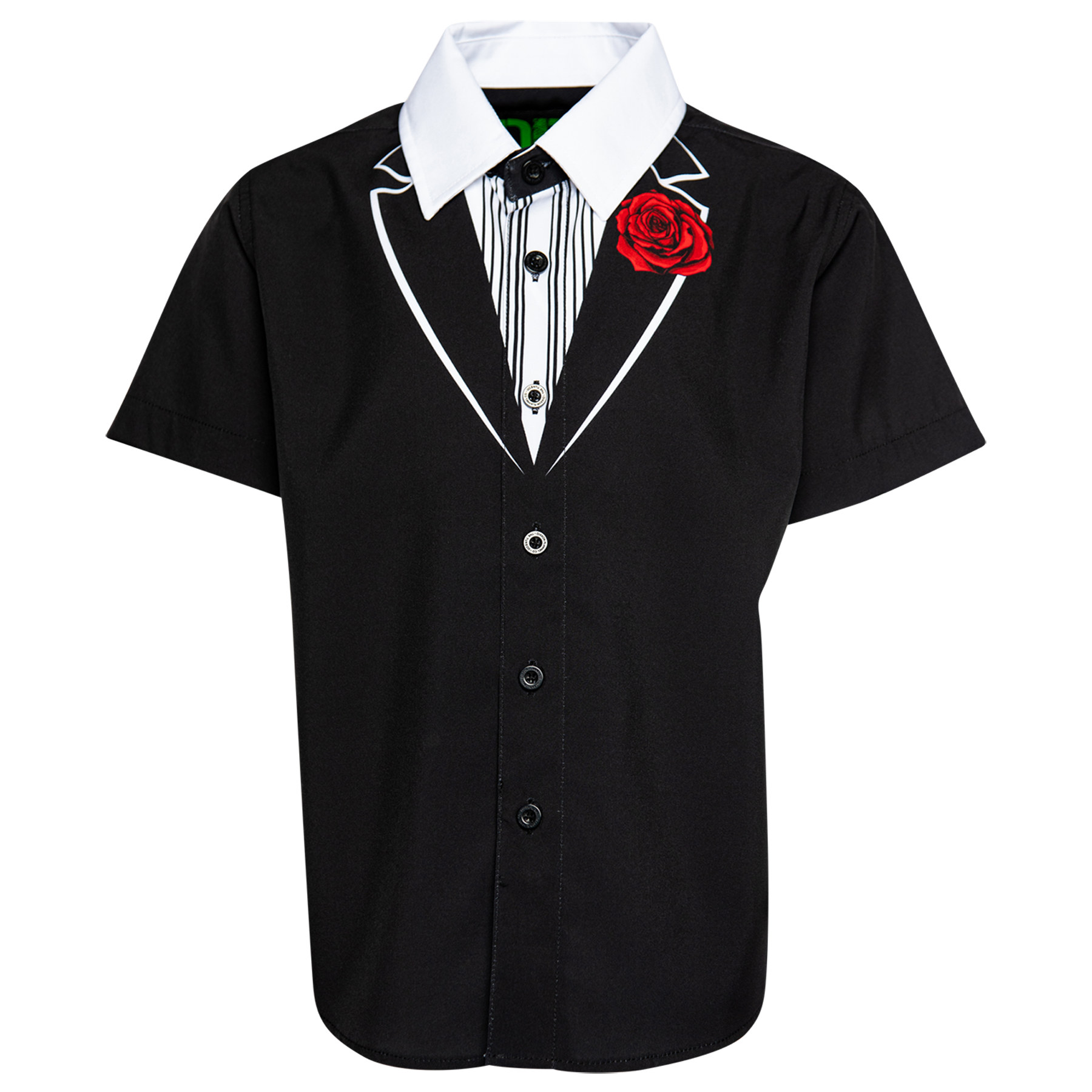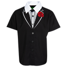 Add some fancy fun to your little one’s look with the Youth Tuxedo Short Sleeve Party Shirt. Styled with a printed tuxedo graphic and red rose detail, it’s all party, no pressure.