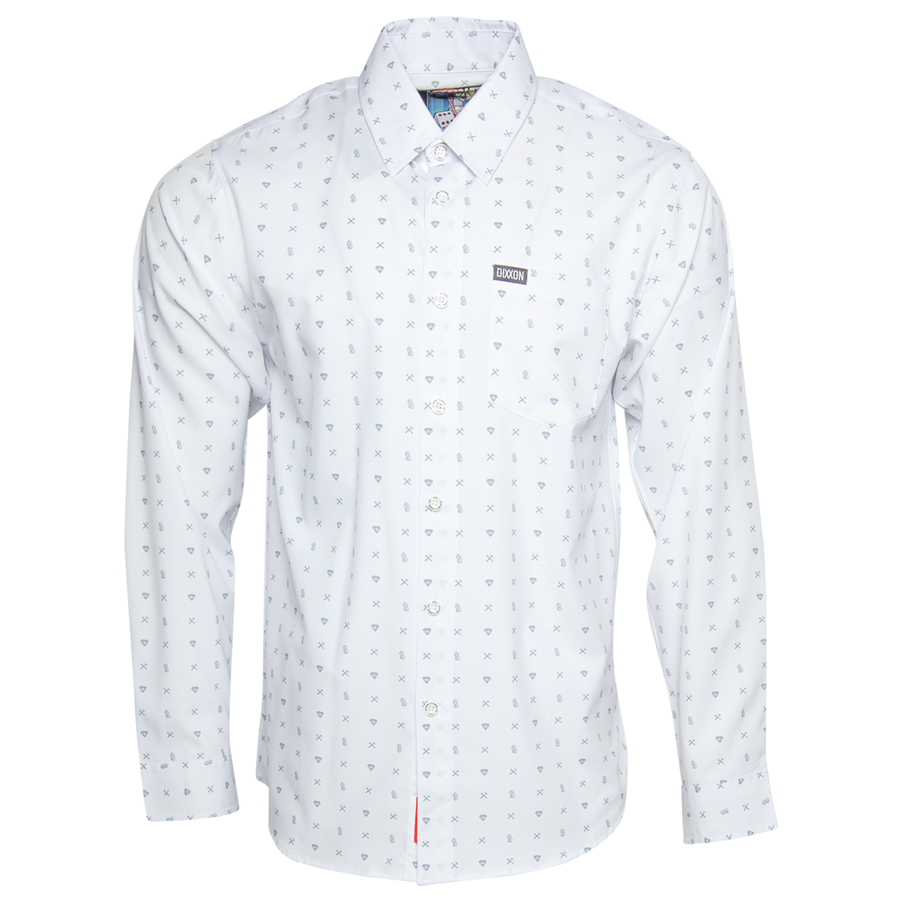 Bring a little Sin City flair wherever you go with the 702 Long Sleeve Party Shirt. Covered in crisp white with all-over diamond, dice, and Dixxon icon prints, this button-up is built for high stakes and good times. Lightweight, breathable, and ready for action from dusk to dawn.