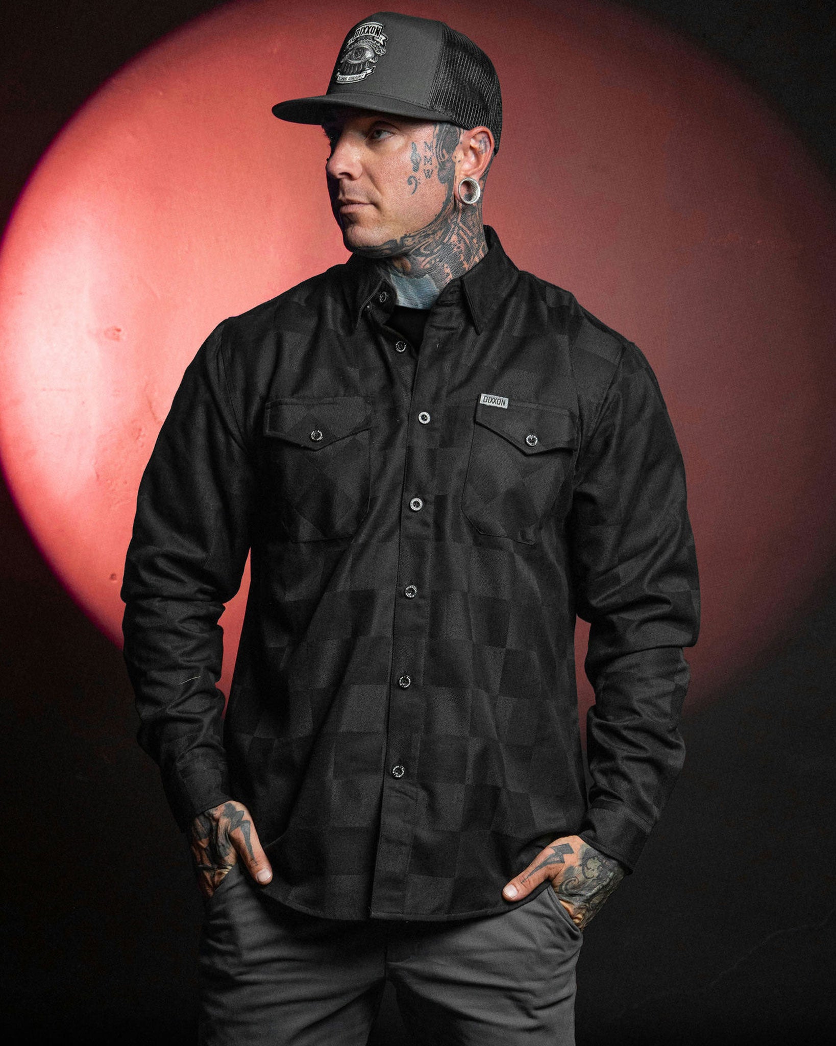 GAME OVER! Our premium jacquard weave returns! The Checkmate Flannel features an allover black on black checkered pattern that offers an eye-catching design, while our signature D-Tech™ blend provides the comfort of soft to the touch flannel. Constructed to be breathable for the performance you demand, yet durable for the rugged lifestyle you live.