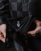 • Microfiber cloth inside the bottom left corner to easily clean your glasses or devices without affecting the look or design
