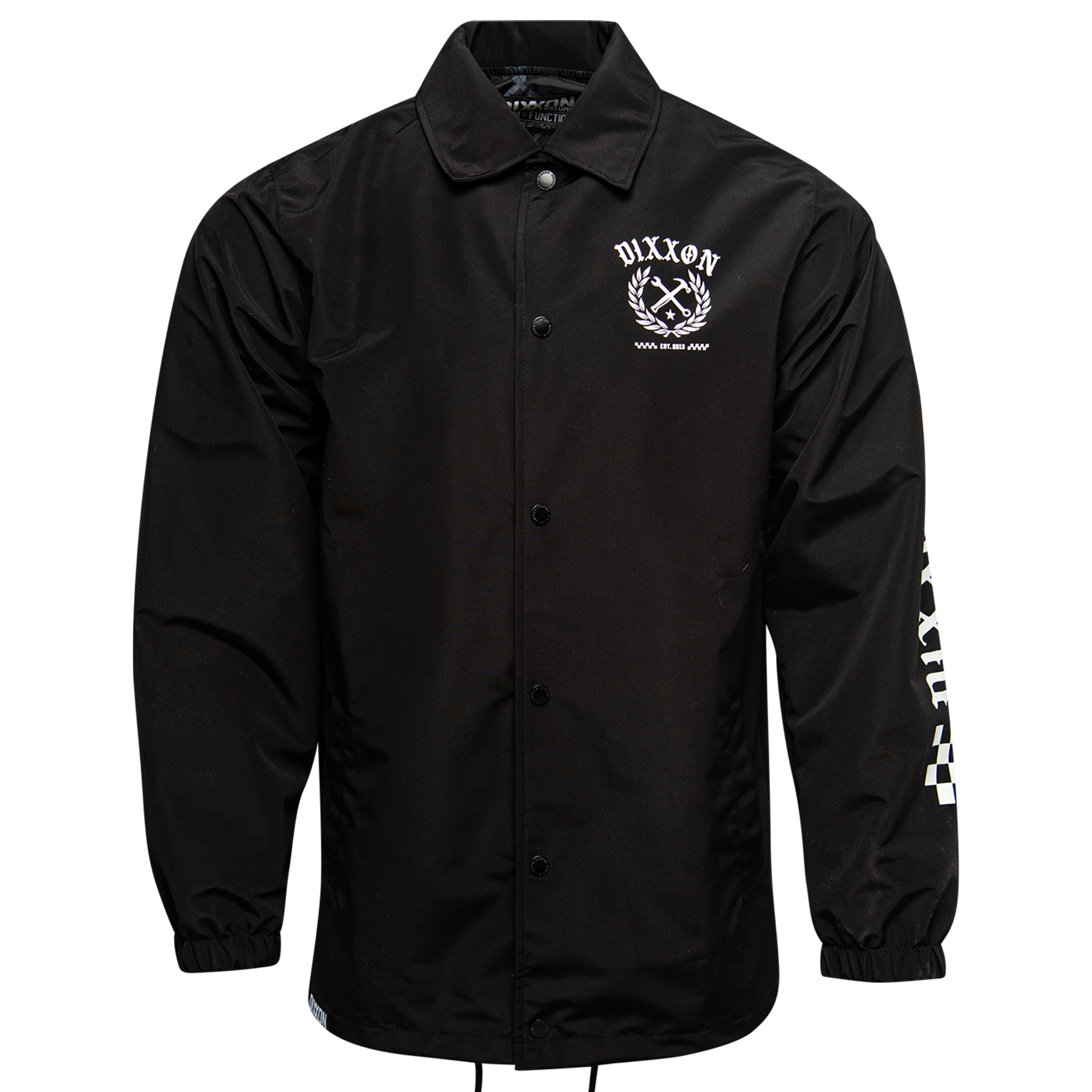 • Men’s black, water-resistant coaches jacket