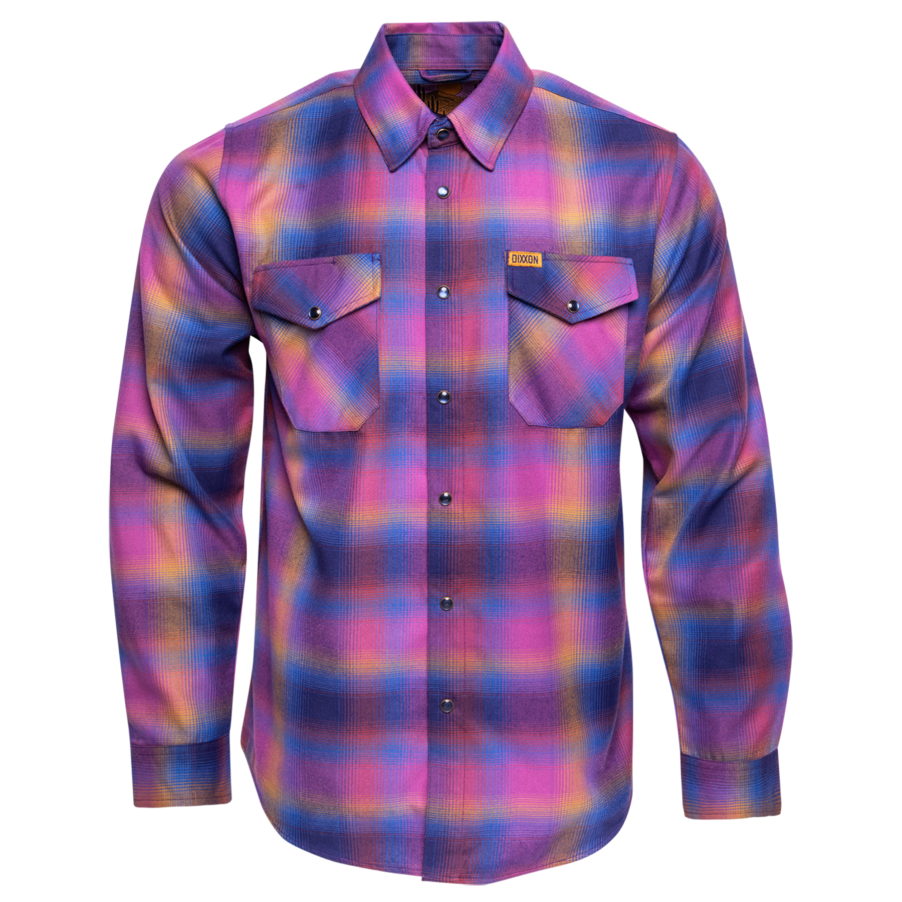 Inspired by early desert sunrises and wide-open skies, the Desert Mornings Flannel delivers bold colour with laid-back comfort. Featuring a vibrant purple, pink, blue, and orange plaid pattern, this snap-front flannel brings warmth, durability, and unmistakable Dixxon style wherever the day takes you.