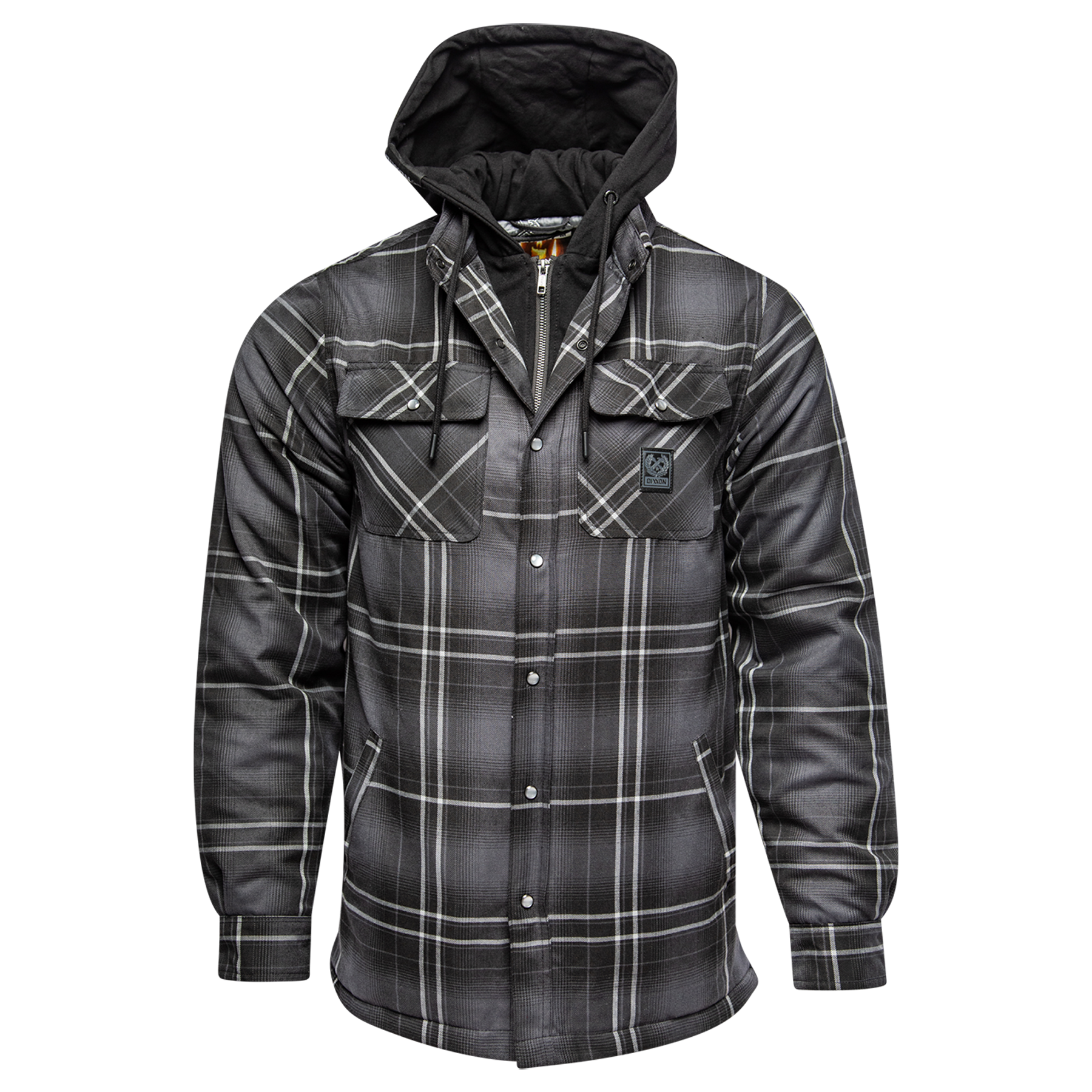 From hood to hem, the Ritual Hooded Flannel Jacket is a true blend of the unique features that help to set us apart. The classic, relaxed fit is teamed with a grey and white wrinkle free flannel exterior and a custom quilted liner that provides both breathability and durability. Two interior breast pockets and a hidden stash pocket behind the neck label are excellent for stowing your essentials, while the traditional 4-pocket configuration offers plenty of extra storage. Finished with a combination dual zipper and heavy duty brass snap front closure, this multi-faceted design echoes the ever-evolving nature you've come to know from Dixxon.