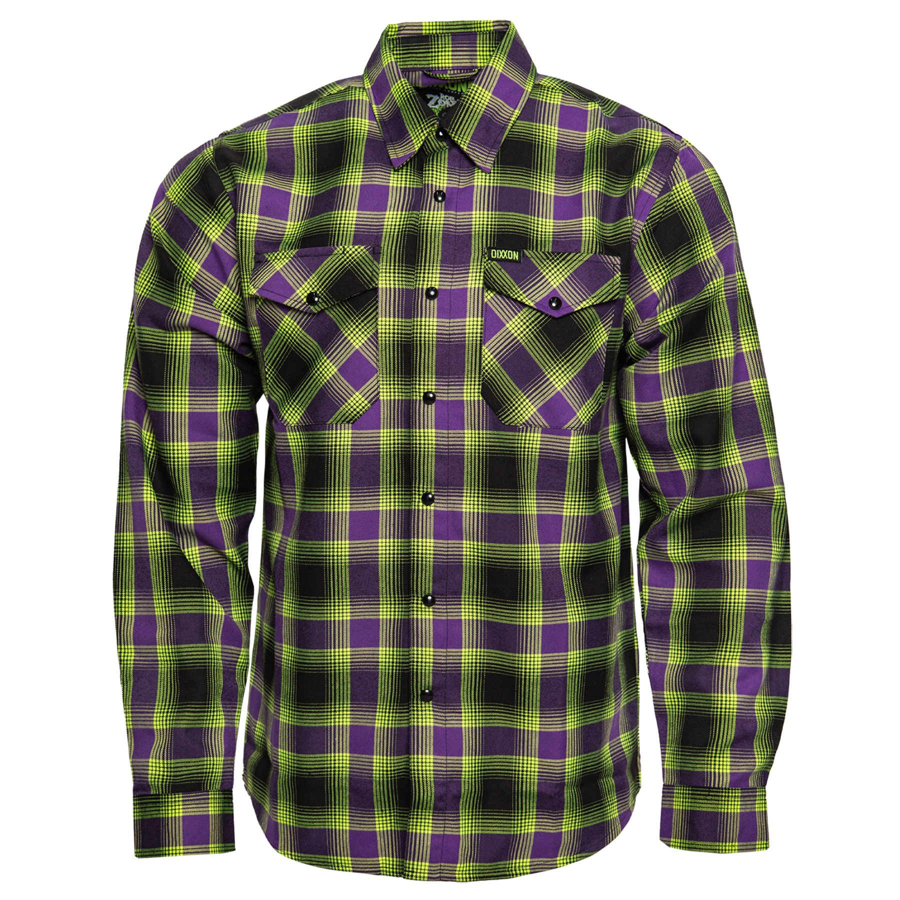Crank it loud and raise some hell with the Rob Zombie Flannel, a killer collab built for the ones who live fast and dress louder. With its haunting mix of green, purple, and black plaid, this flannel brings a heavy dose of horror and horsepower to your everyday lineup.