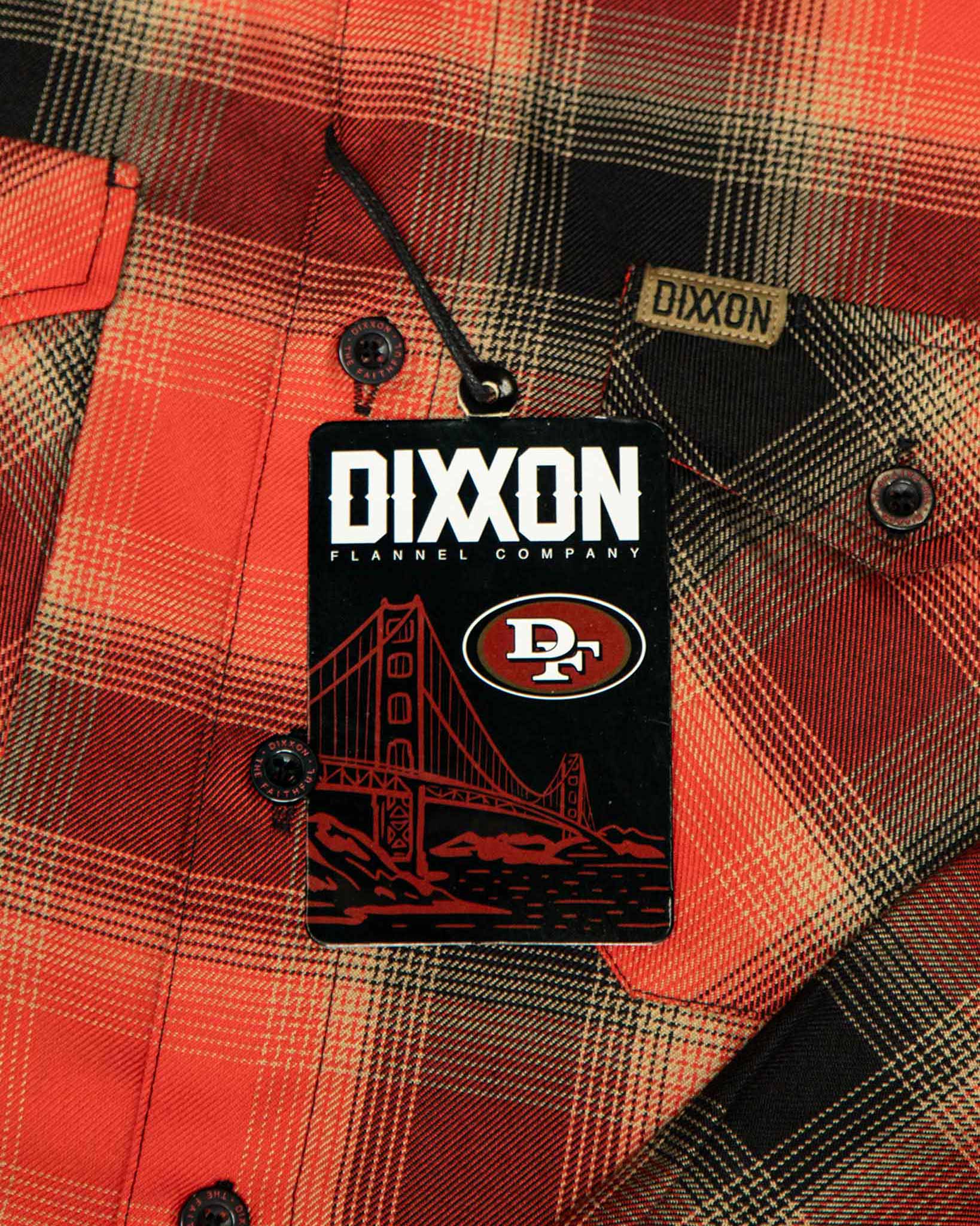 • Dixxon brand tag on the left chest pocket