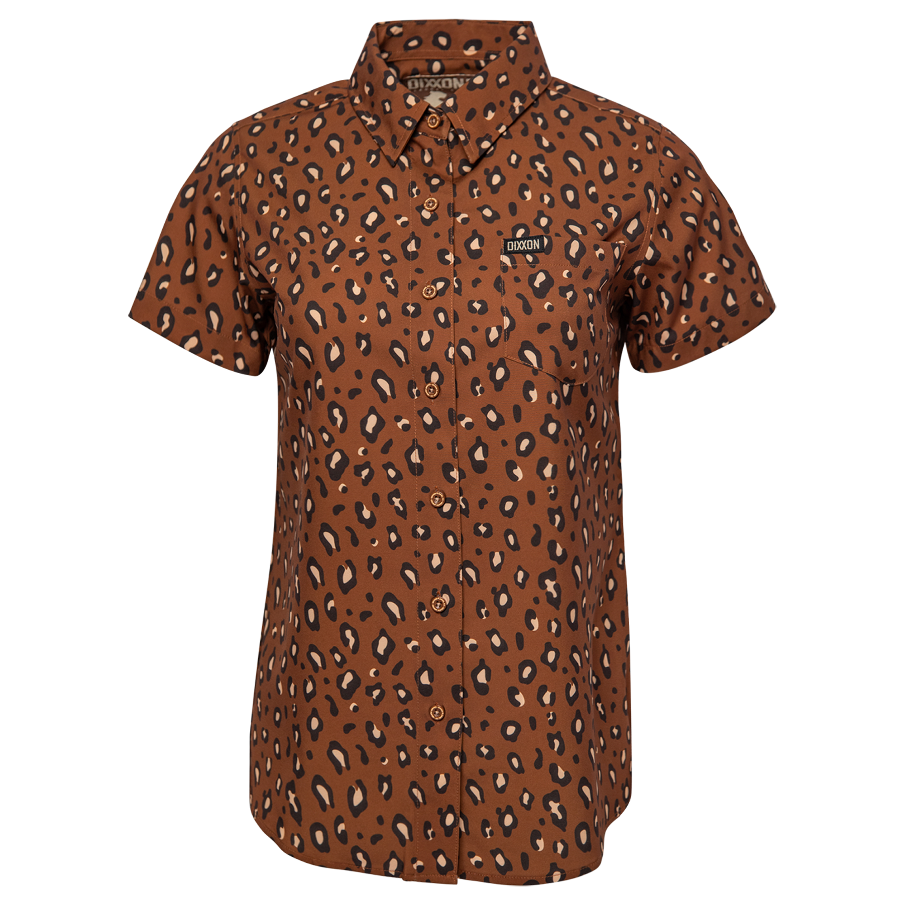 Add some wild energy to an everyday essential with the Women’s Cougar Hunter Short Sleeve. Featuring a bold leopard-inspired print on a rich brown base, this statement-making button-up blends fierce style with comfortable stretch. Built to move with you while keeping a flattering silhouette, it’s ready for nights out, weekend plans, and everything in between.