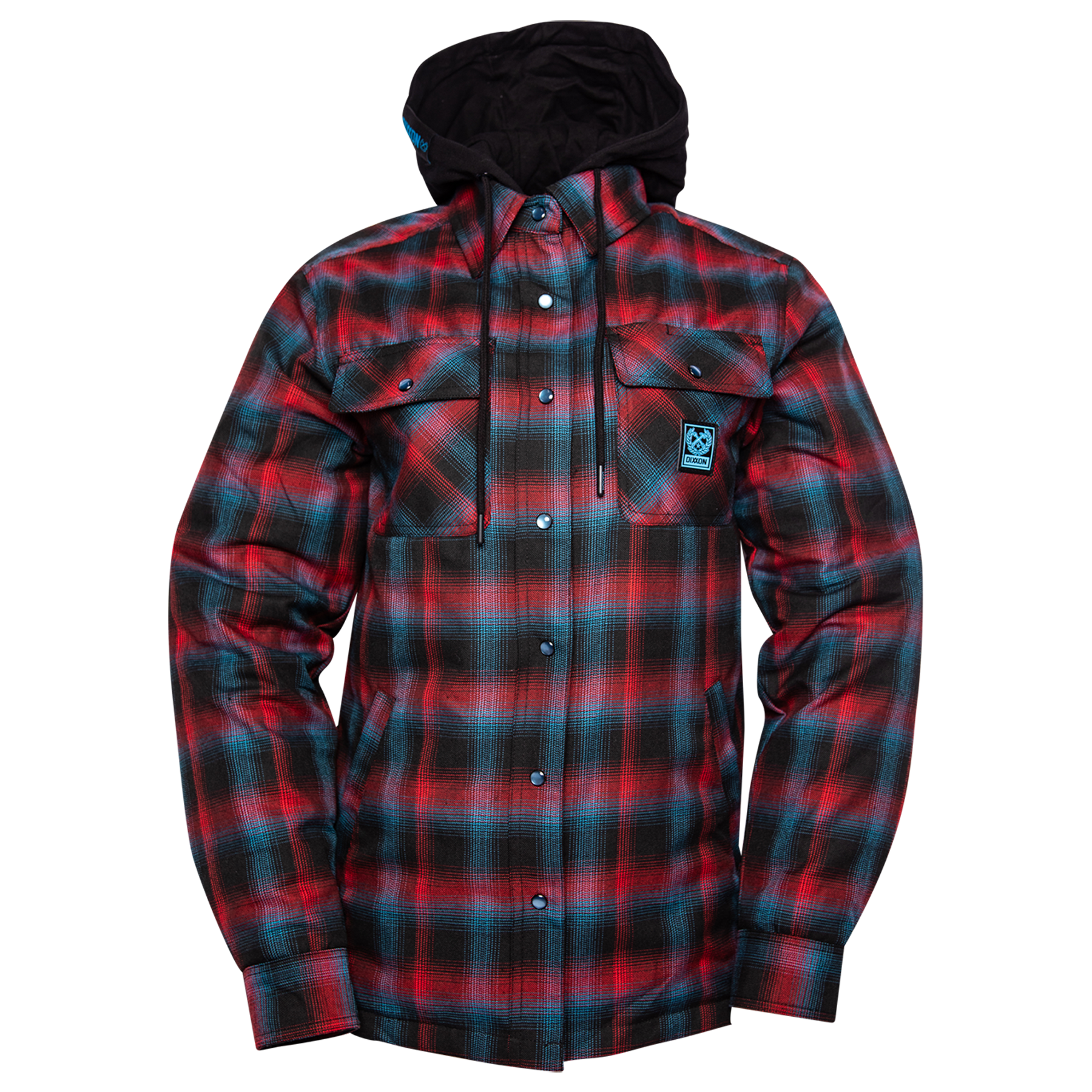 From hood to hem, the Dimension Hooded Flannel Jacket is a true blend of the unique features that help to set us apart. The classic, relaxed fit is teamed with a red, blue, and black wrinkle free flannel exterior and a custom quilted liner that provides both breathability and durability. Two interior breast pockets and a hidden stash pocket behind the neck label are excellent for stowing your essentials, while the traditional 4-pocket configuration offers plenty of extra storage. Finished with a combination dual zipper and heavy duty brass snap front closure, this multi-faceted design echoes the ever-evolving nature you've come to know from Dixxon.