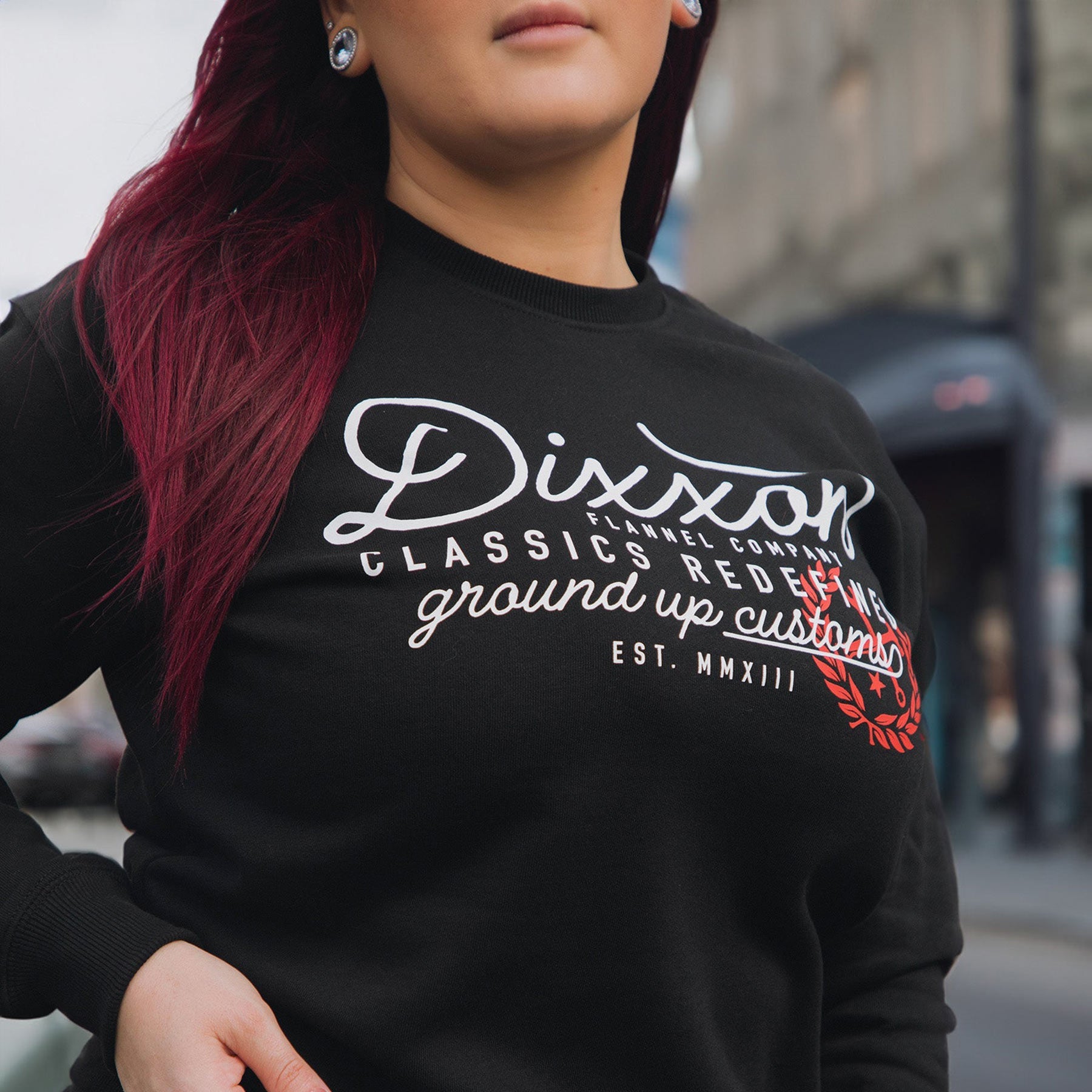 Traditional style with a bit of an edge! The Women's Ground Up Customs Crewneck Sweatshirt features a comfortable and relaxed fit, while the signature Dixxon branding sets it apart from other pieces in your closet. Complete with a soft fleece lined interior and ribbed knit detailing, the Ground Up Customs will keep you nice and cozy on a chilly day.