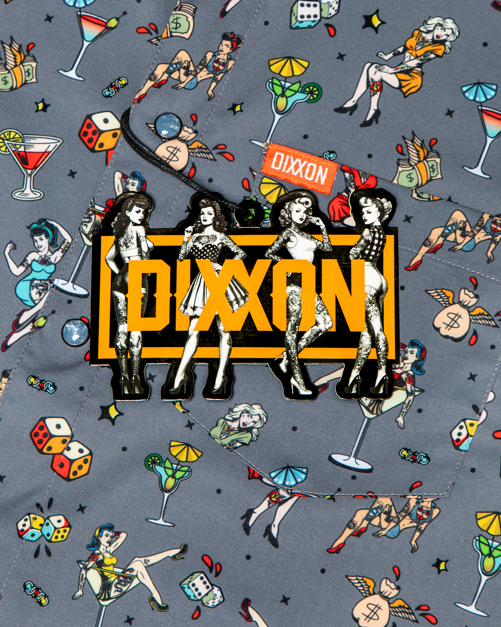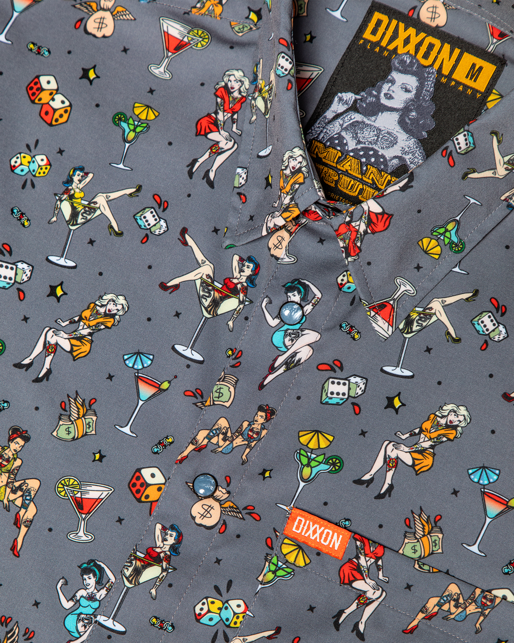 Bold, playful, and a little rebellious, the Women's Man's Ruin Party Shirt brings vintage pin-up energy to a modern essential. Featuring a grey base with an all-over print of pin-up girls, cocktails, dice, and cash, this piece is made to stand out while keeping things effortlessly comfortable. Lightweight and breathable with a smooth finish, it's ready for long nights and even better stories.