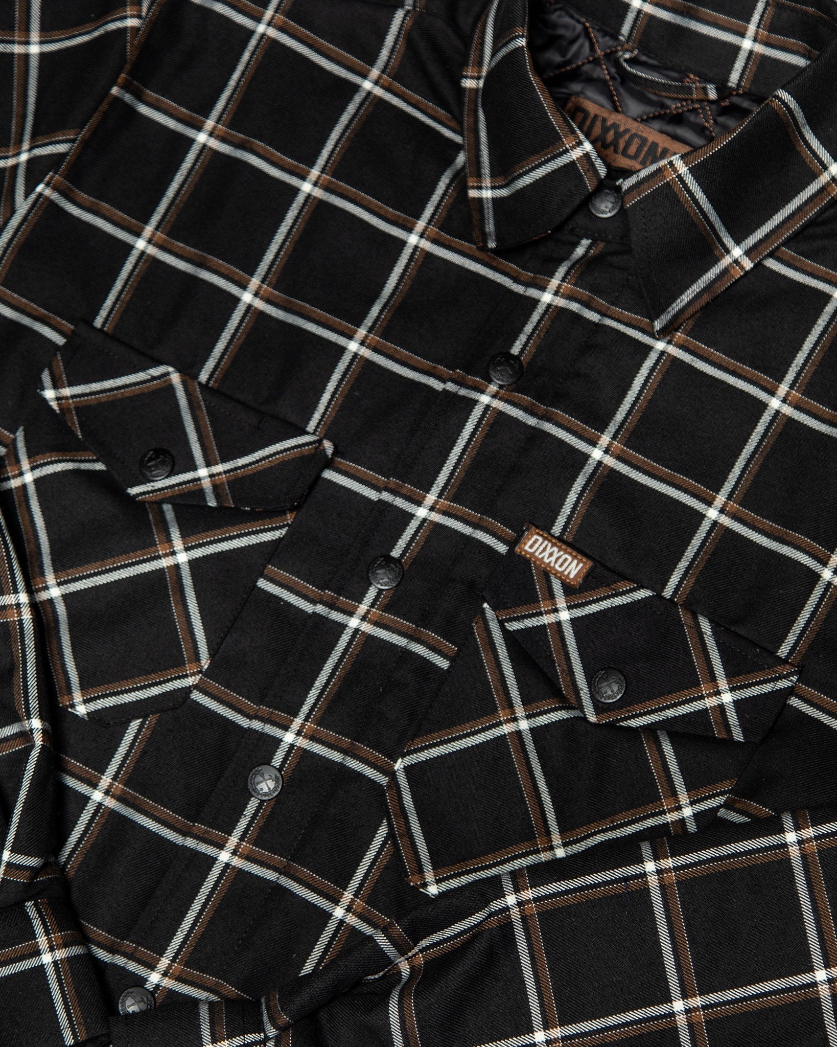 Shadowy and sharp, the Women's Mesquite Quilted Flannel Jacket blends a black, gold, and white plaid exterior with a diamond-stitched liner for cosy warmth without the bulk. A wrinkle-resistant shell and work-ready details make it an easy everyday layer.