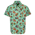 Add some throwback vibes to an everyday essential with the Youth 1996 Party Shirt. Featuring a mint green base with flaming cherries, lucky clovers, dice, lightning bolts, and checkered flags throughout, this bold print brings big personality to your little ripper’s lineup.