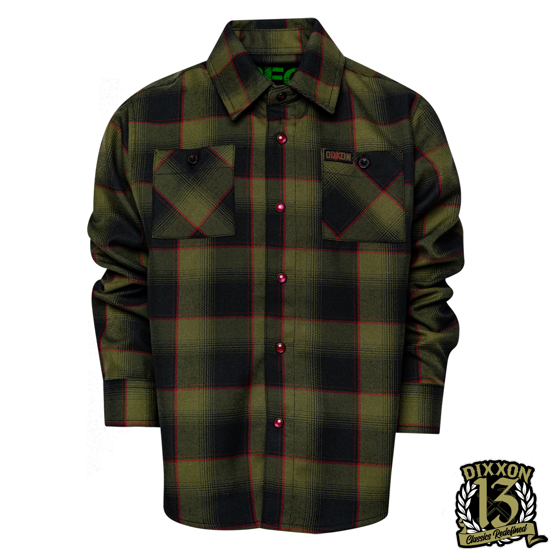 Cool weather just got a little bolder. The Youth Elm St. 2.0 Flannel features a standout green, black, and red plaid pattern that’s built for everyday adventure. Comfortable, durable, and easy to layer, this snap-front favoUrite is ready for school days, weekends, and everything in between.