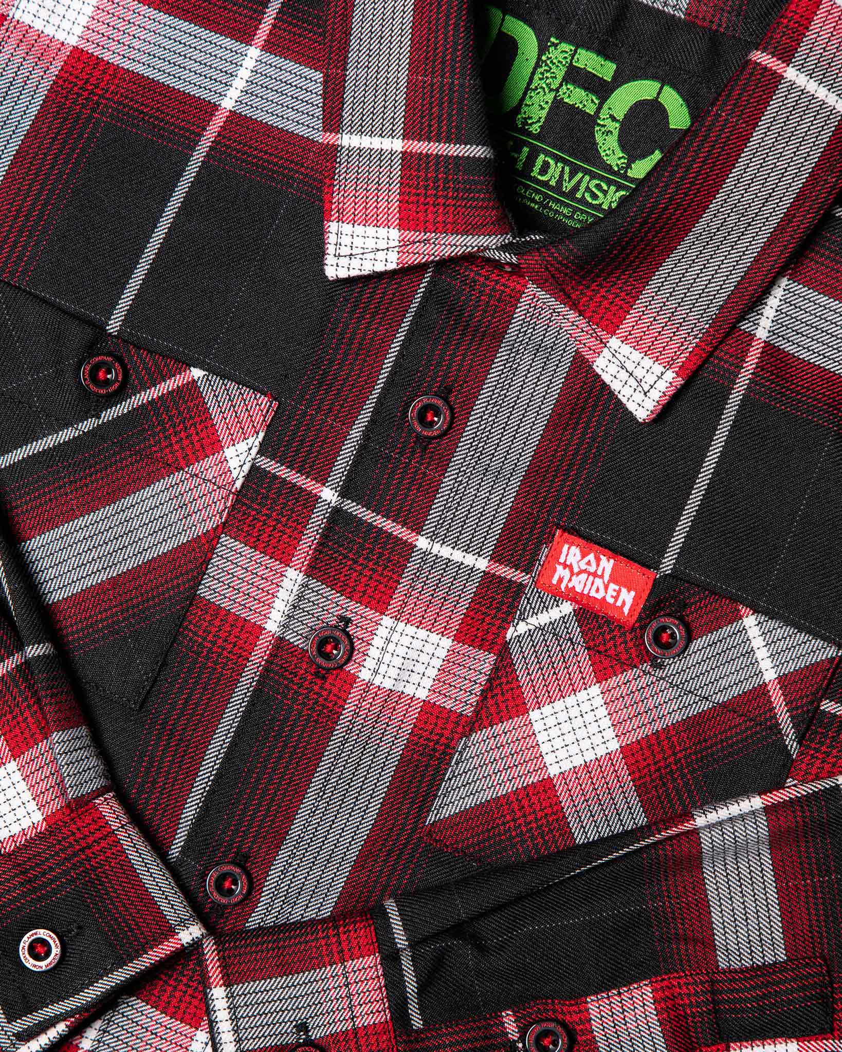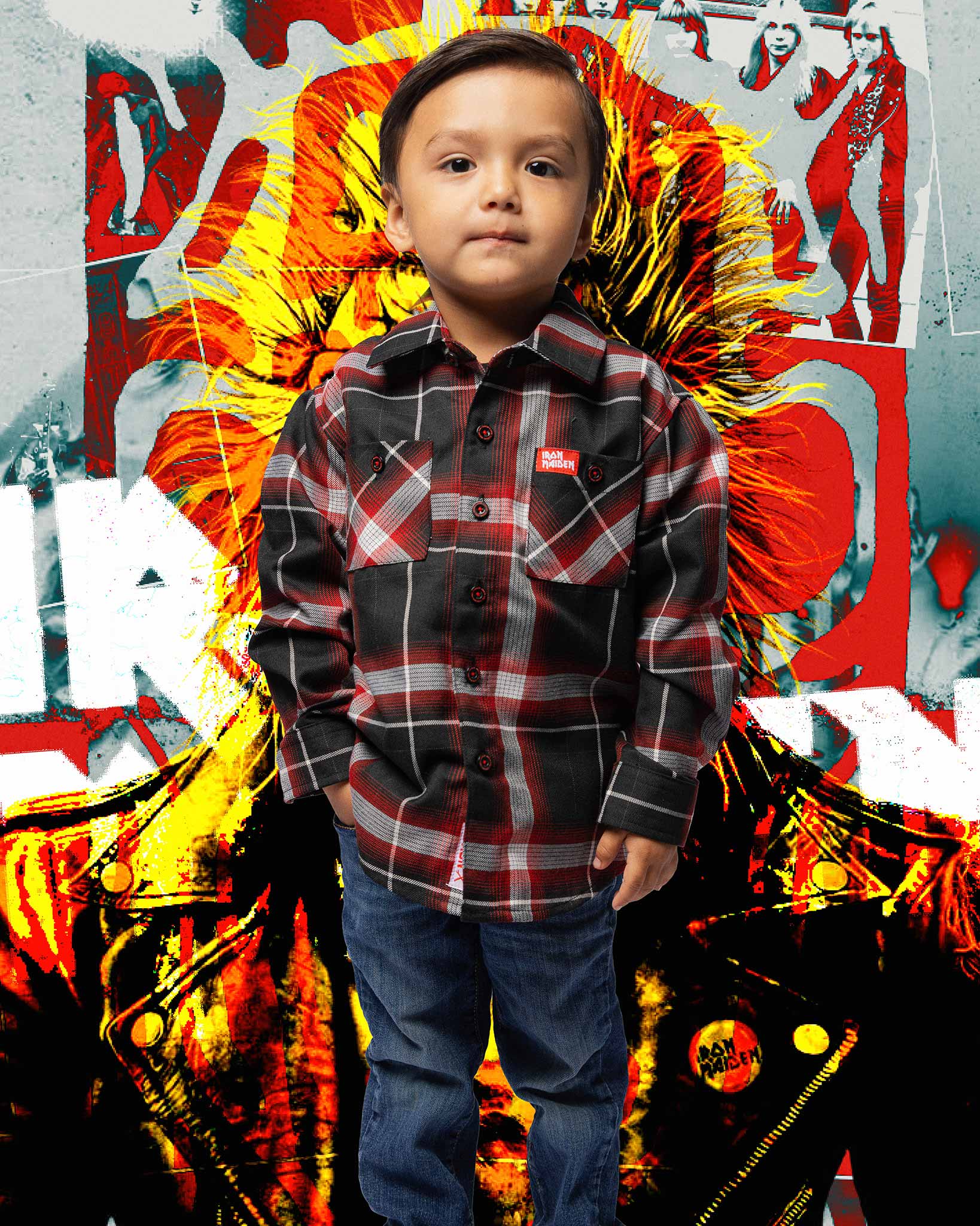 Made to keep up with high-energy days and nonstop movement, the Youth Iron Maiden x Dixxon Flannel brings iconic collab style to the next generation. Featuring a red, black, and white plaid pattern, this button-up flannel delivers comfort, durability, and serious attitude.
