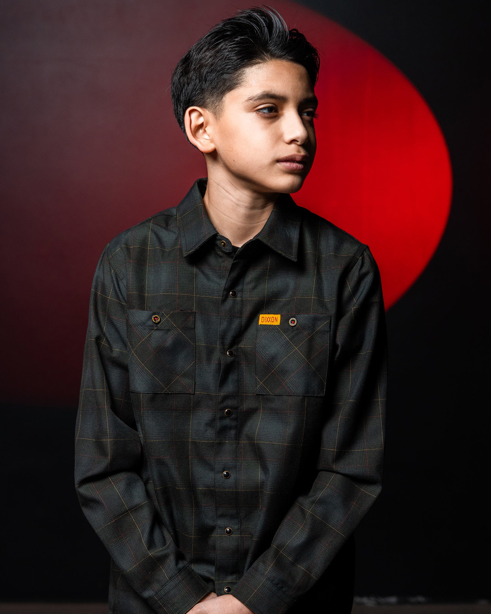 Clean, crisp, and ready for anything, the Youth Baron Flannel brings a standout grey, black, red and gold plaid made for everyday adventure. Durable, comfortable, and built to keep up with busy kids, it's a go-to layer they'll reach for again and again.