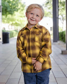 Traditions, legacy, and the beauty everywhere in between. Family memories of americas favourite pastime and doing it all with an incredible cause attached. This one is about COMMUNITY. The Youth The Friar Flannel is a warm-hearted nod to strength, courage, and support. In a gold and brown plaid with snap button closures, this piece brings comfort, durability, and meaning to your little ripper's wardrobe.