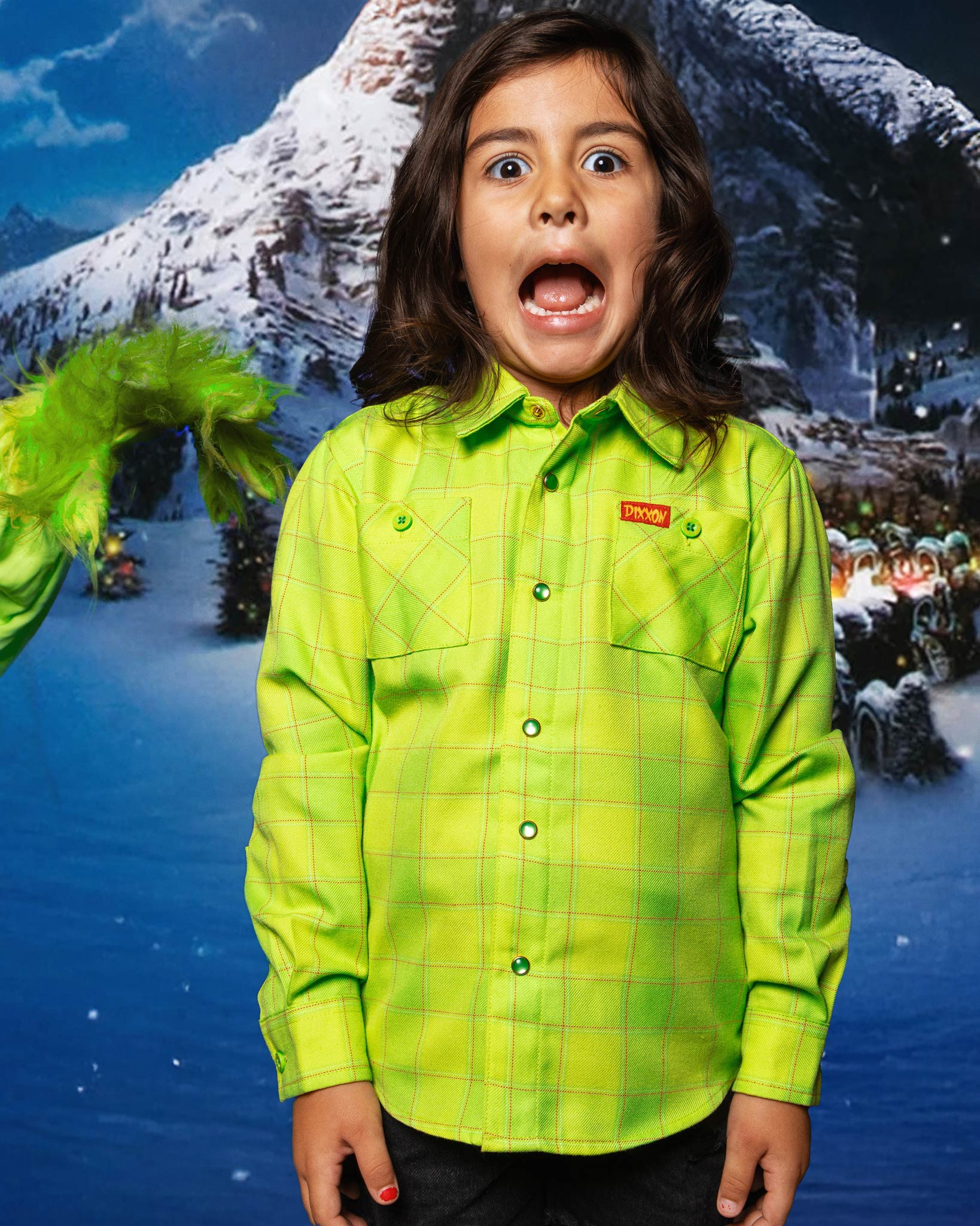 Fun, festive, and ready for holiday mayhem, the Youth Mean One Flannel brings bold green, red, and white plaid to every winter adventure. Soft, durable, and perfect for your little mischief-maker.