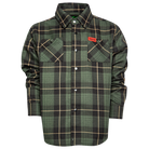 Built for the little legends with big holiday energy, the Youth Ornament Flannel brings festive flair and comfort that lasts all season. Featuring a green, black, and tan plaid pattern and durable snap-front design, it's made for school days, play days, and every adventure in between.