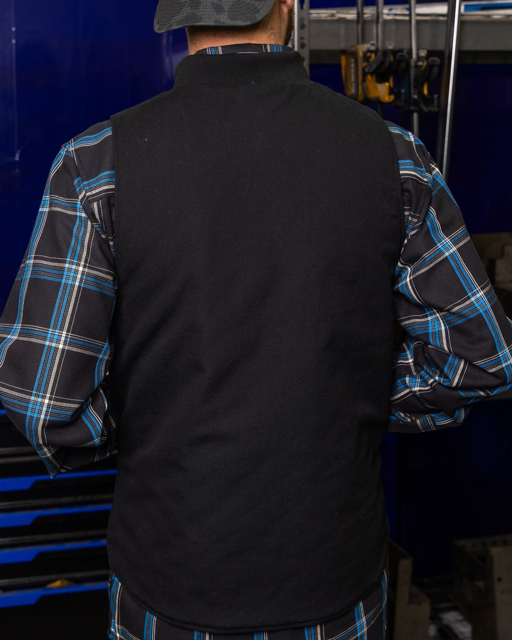 Built to endure the toughest jobs while offering all-day comfort, the Outlaw Work Vest combines a rugged black cotton shell with a quilted flannel liner for warmth without the weight. The bomber rib knit collar, secure pocketing, and dual front zippers make it an essential layer that works just as hard as you do. Whether you're at the job site or out for a ride, the Outlaw Work Vest is your go-to for both style and function.