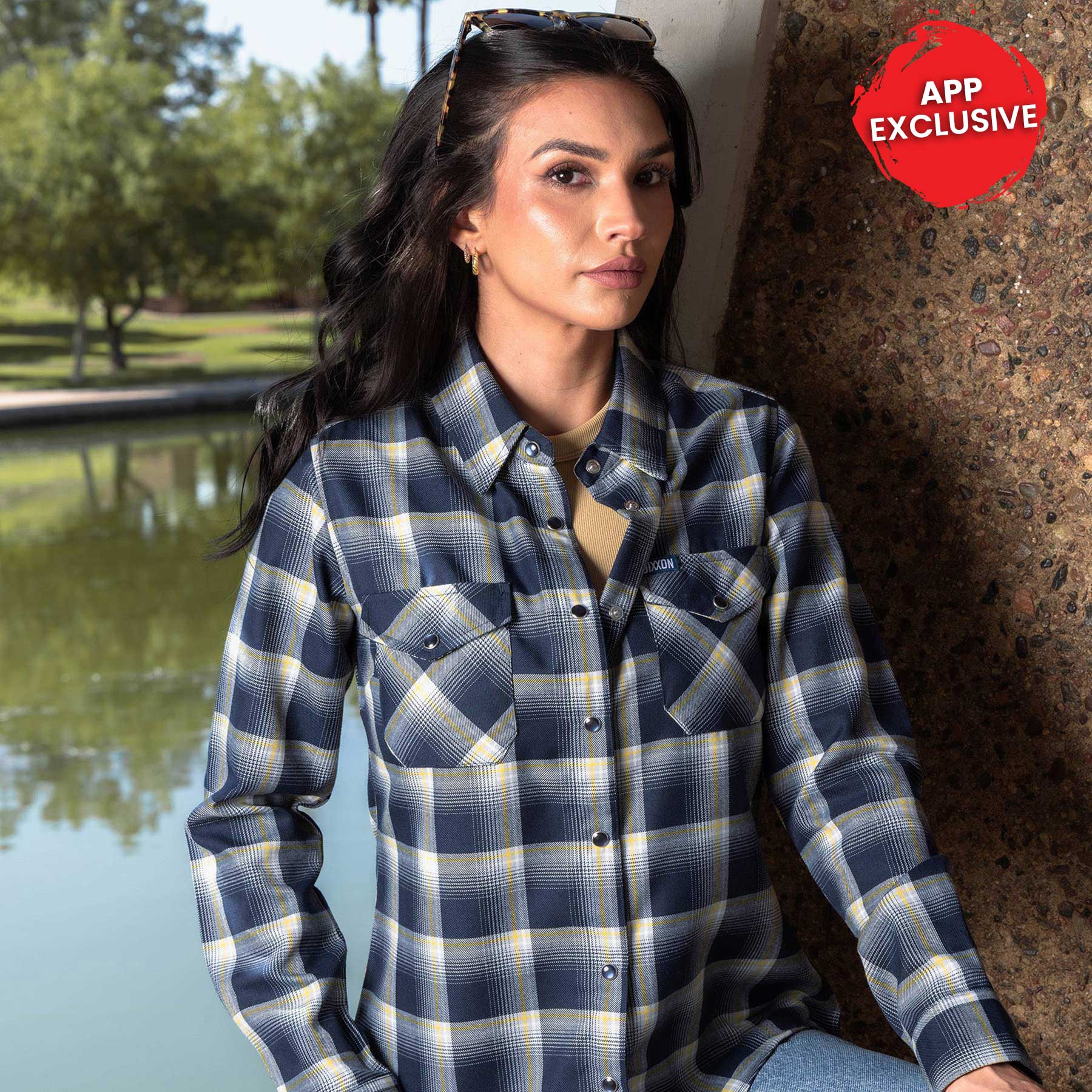 Anchored in heritage and strength, the Women's Old Salt Flannel brings coastal grit to everyday style with its blue, white, and yellow plaid pattern. Designed for comfort and built to endure, this wardrobe staple carries that timeless Dixxon spirit through every tide.