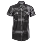 • Women's black, grey, and white plaid patterned short sleeve bamboo shirt