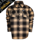 For the young trendsetters, the Youth Barrio Heritage Flannel brings timeless plaid style to a kid-friendly fit. Featuring an allover tan and black plaid pattern with snap closures, it's perfect for school, play, and everything in between.