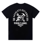 Add a dose of Dixxon to your daily wardrobe with the Absolute Defiance T-Shirt. This cotton crew neck features a white "ABSOLUTE DEFIANCE" wildcat graphic screen-printed on the left chest and back.