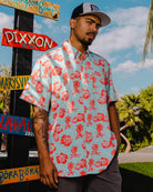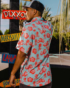 A KILLER Hawaiian shirt to add to your collection. Constructed with an easy fluid fabric, this button up party shirt was designed for a comfortable and laid-back wear. Soft and lightweight with a shrink and wrinkle resistant finish, the Mount Wannahockaloogie is a must-have for anyone looking to have a good time!