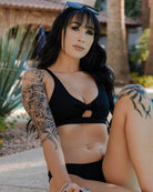 Flirty with a functional twist, the Women’s Tied Up Bikini Top brings playful energy to your swim lineup. Designed with a flattering deep V neckline and wide halter-style straps, this top features a knotted tie-front detail and an adjustable lace-up back with crisscross straps for a custom, supportive fit. Crafted from soft-stretch fabric and finished with a wide underbust band, the Tied Up is ready to stun from the sand to the surf.